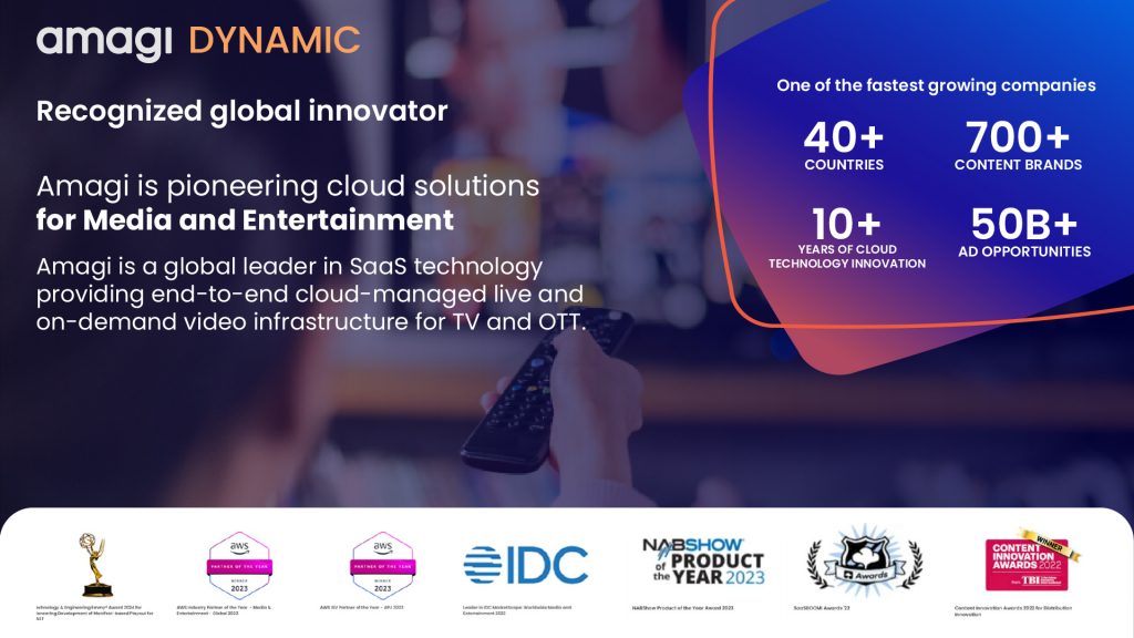 Amagi Dynamic is a revoluntionary new live event playout system that can manage multiple simultaneous live segments for TV and OTT independent of any channel. The goal was to maximize ROI from live events with a cloud first approach.
